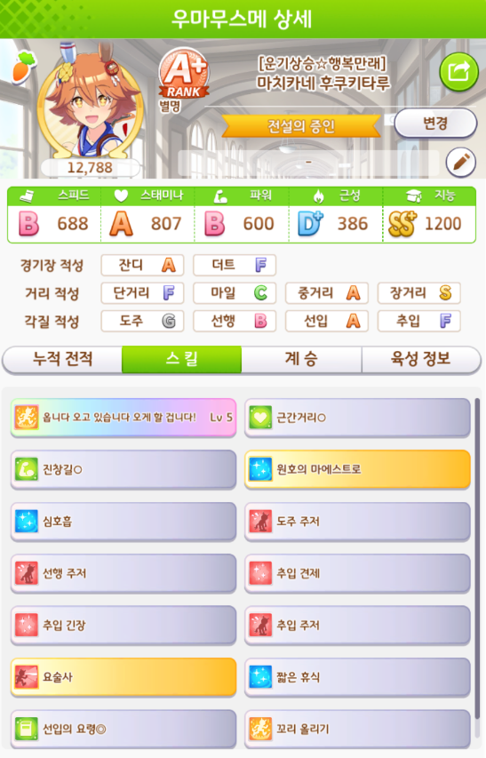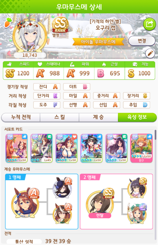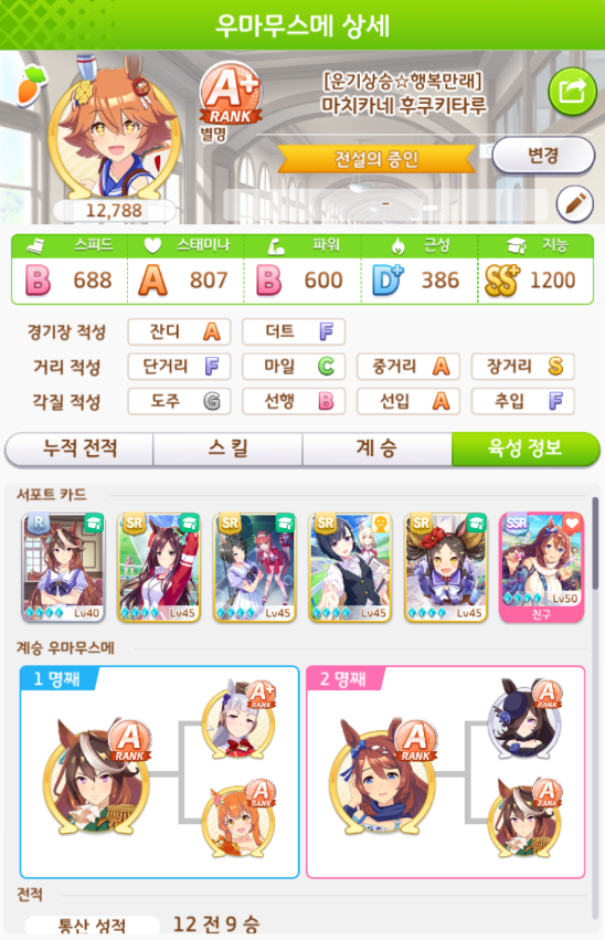 육성 시나리오는 아오하루배에서 육성했습니다.