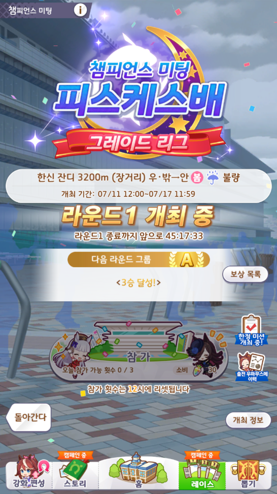 | 피스케스배 챔피언스 미팅 A결승 결과 - [우마무스메] (0) | 2023.07.16 |