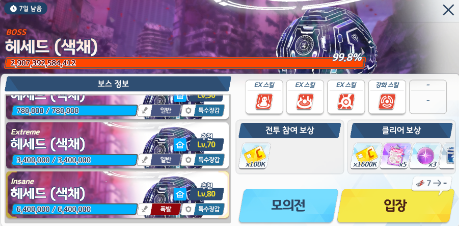 그 외에는 패턴은 모두 총력전과 비슷합니다.