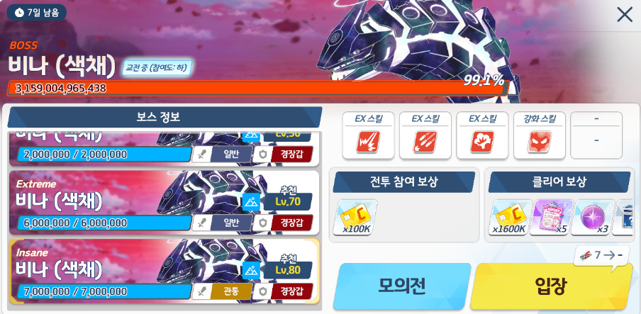 인세인 난이도는 티켓 20장으로 입장됩니다.