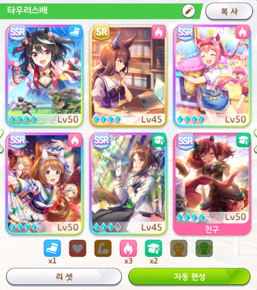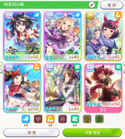★레이스 보너스 5%이상 SR이상 서포트만 기입★
