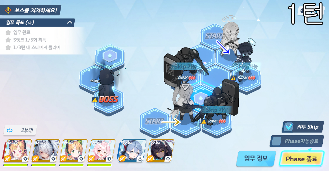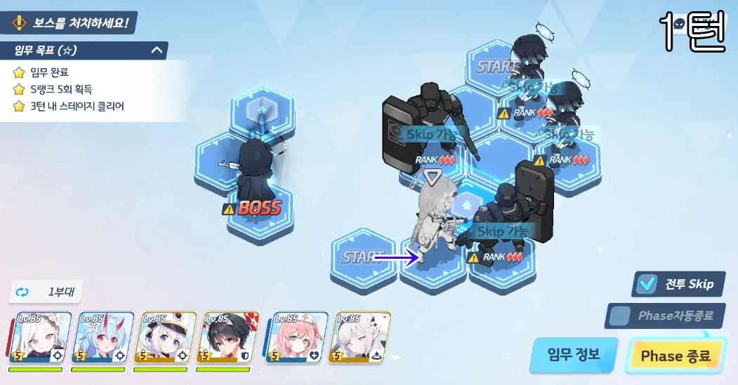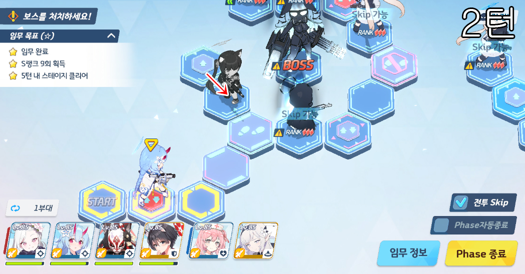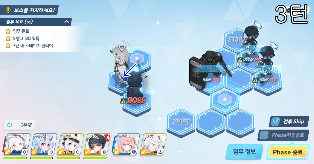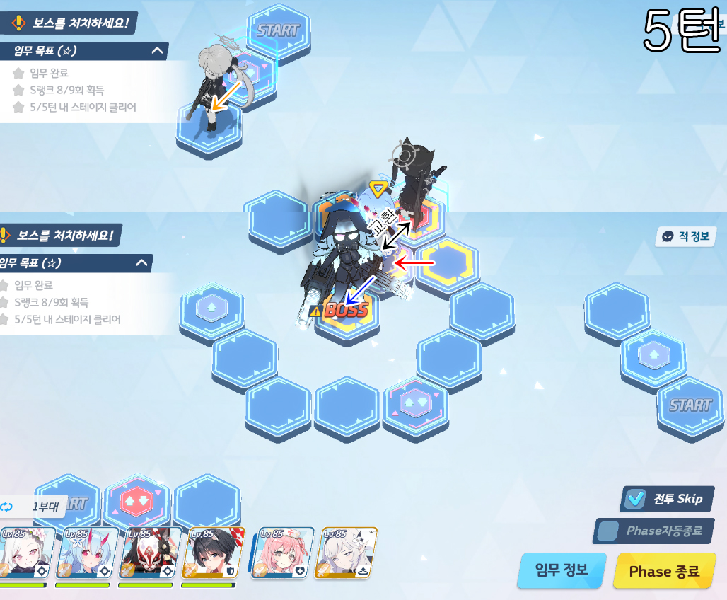 총 5번의 전투로 400초 미션 클리어