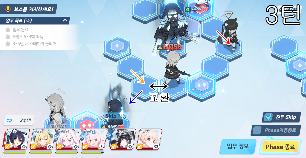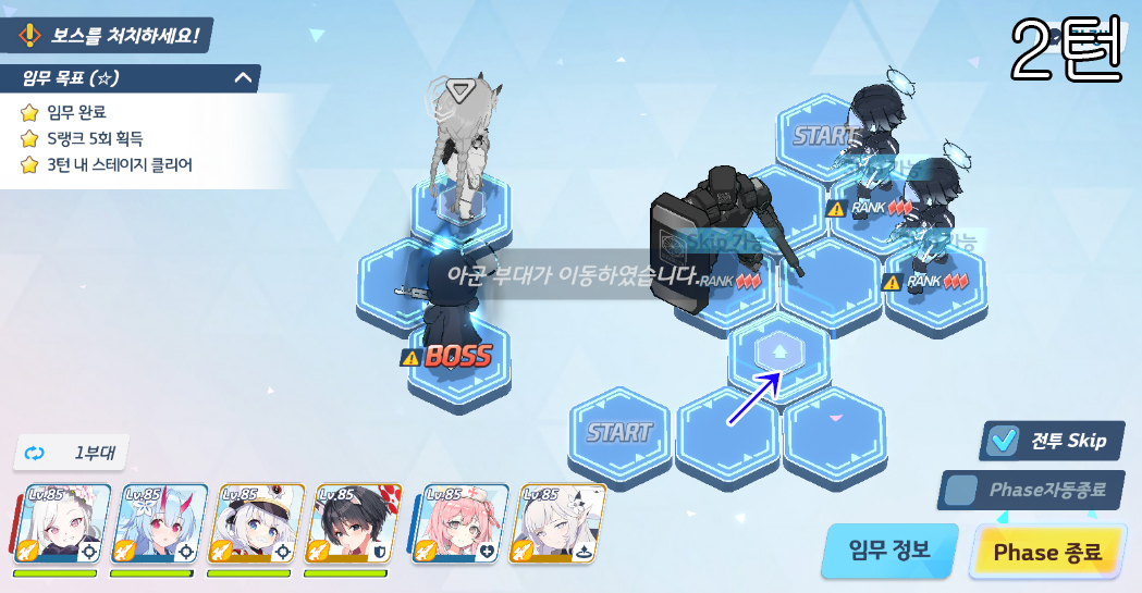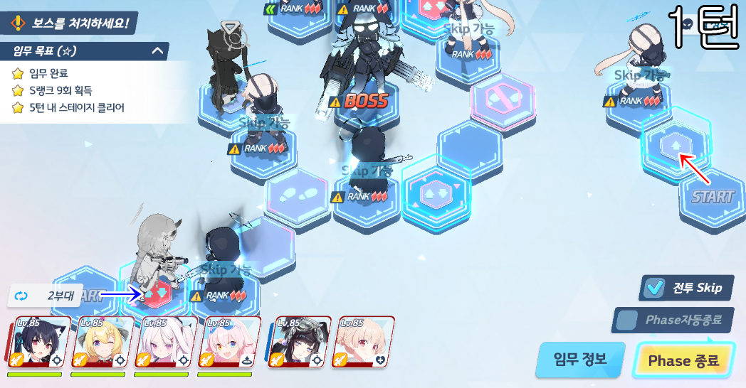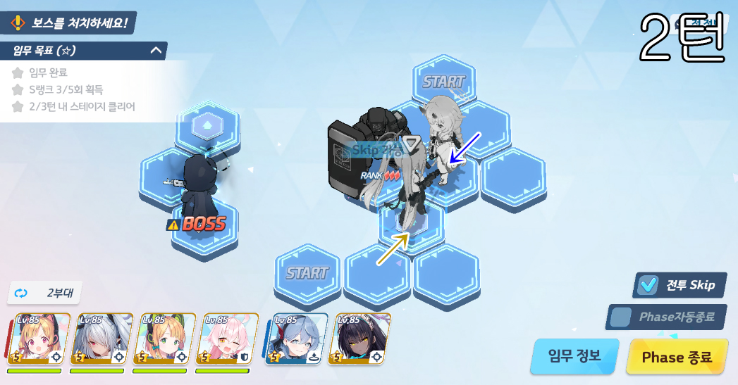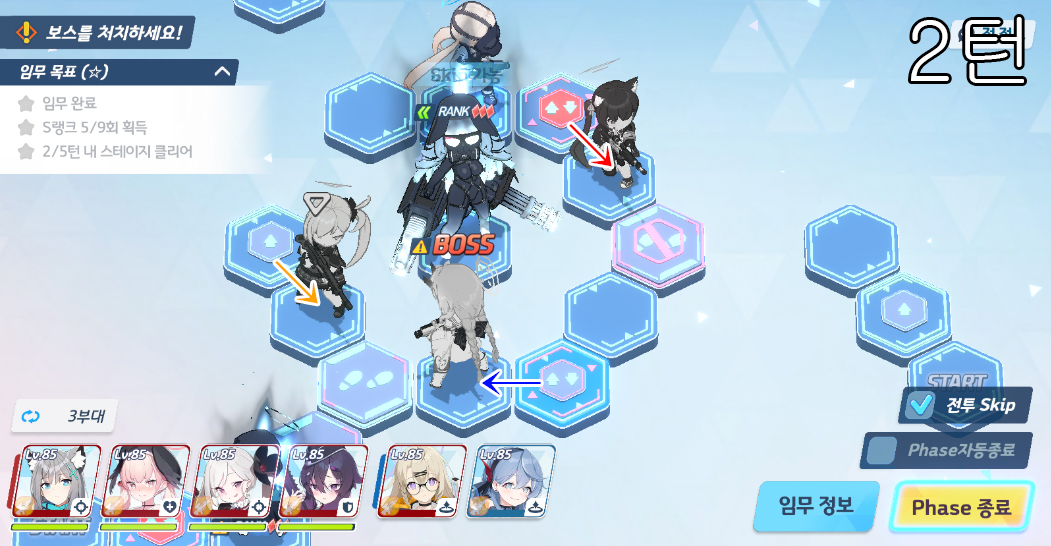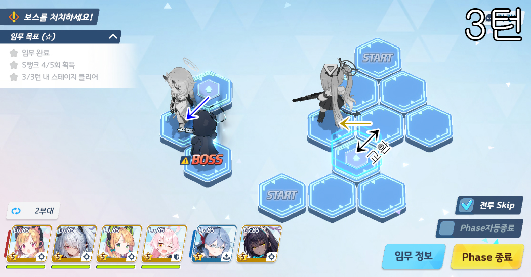 총 5번의 전투로 400초 미션 클리어