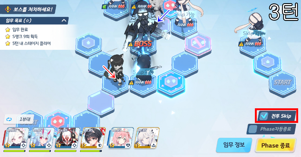 전투 SKIP을 미포함해서 플레이 하시면