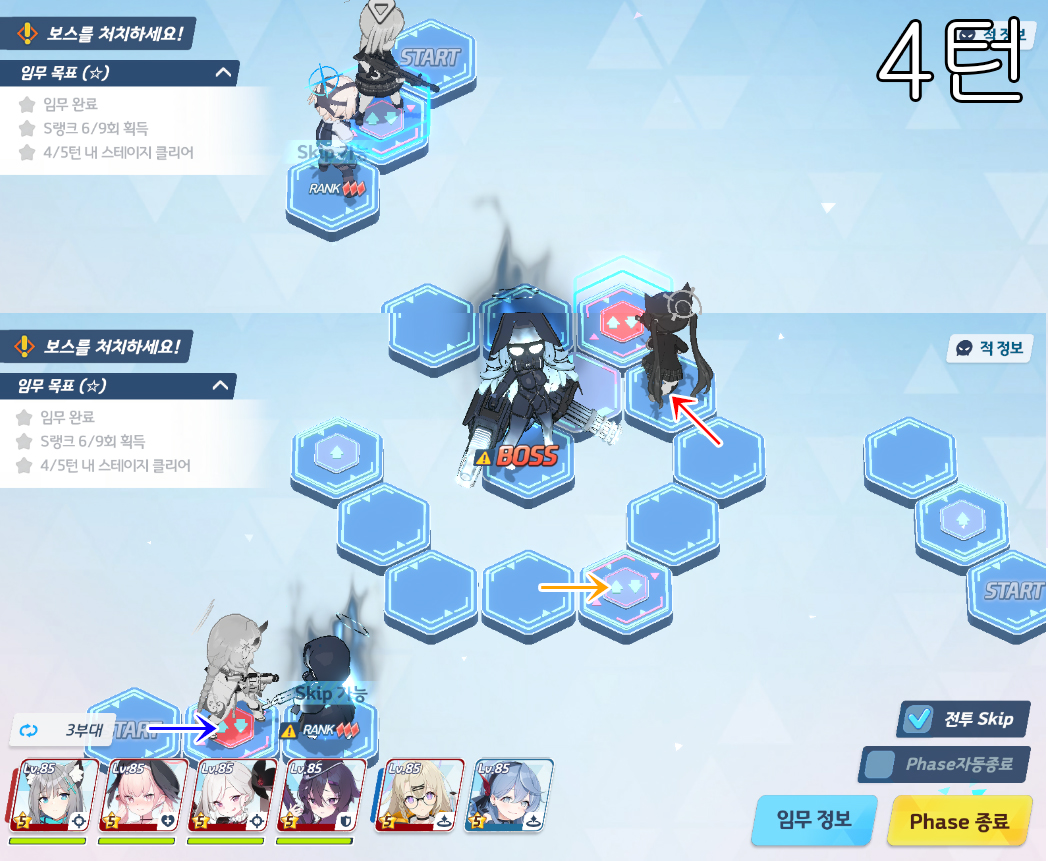총 4번의 전투로 400초 미션 클리어