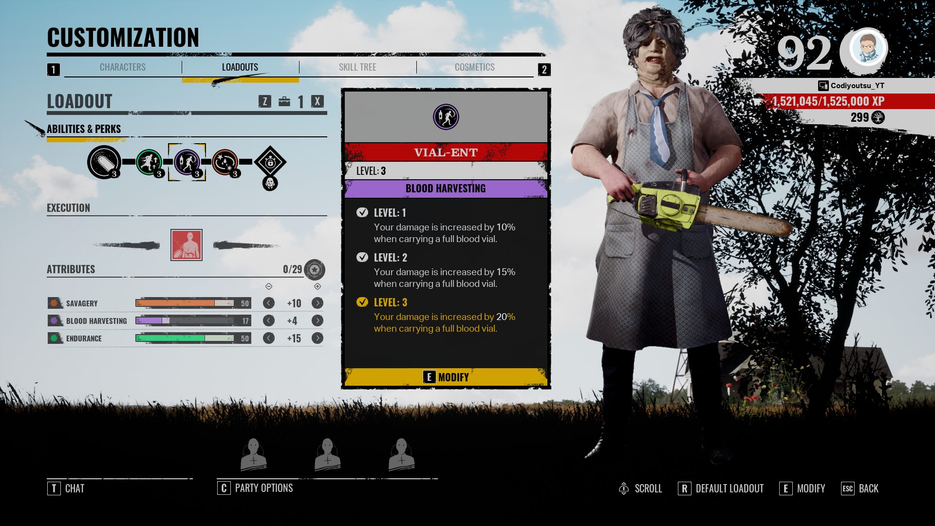 레더페이스 고유 스킬은 무난하게 123이 좋습니다.