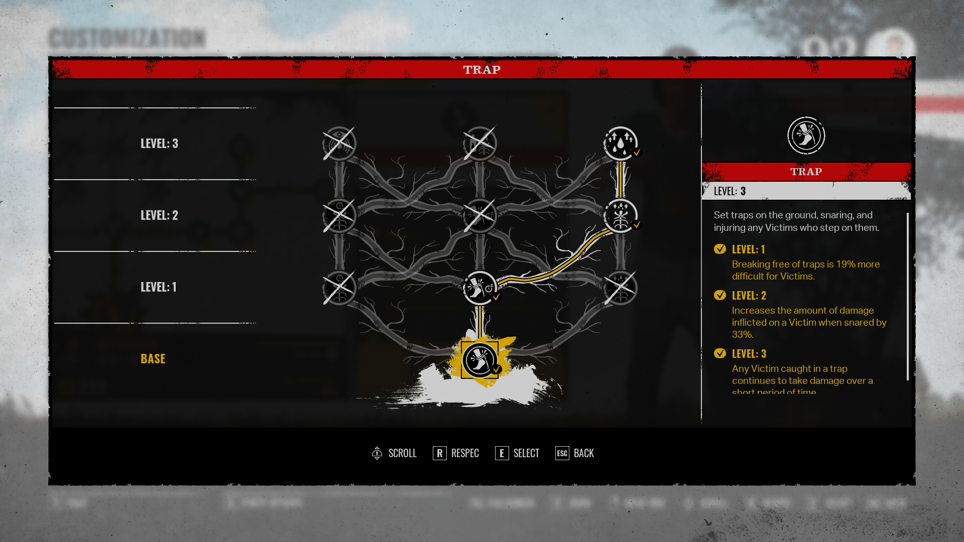 레더페이스 스킬 트리는 위 사진을 참고해주세요.
