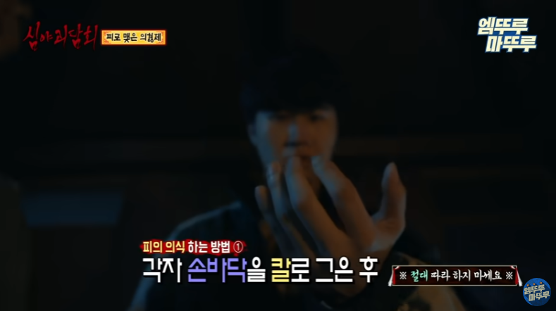 1. 각자 손바닥을 칼로 그은 후