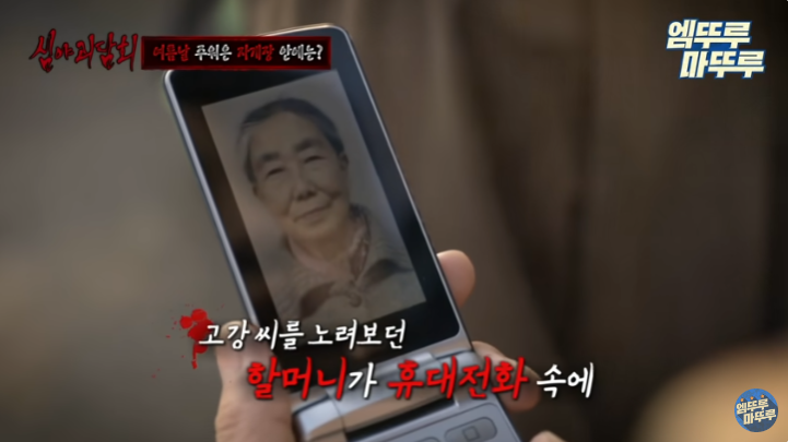 고강씨를 노려보던 할머니가 휴대전화 속에