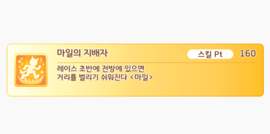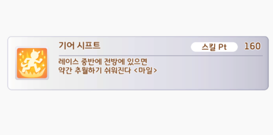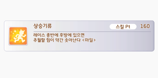 추입 골드 쉽 (스태미나20% + 파워10%) => 육성 난이도 높음