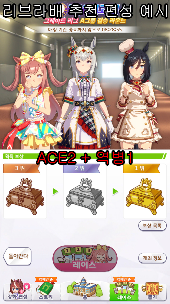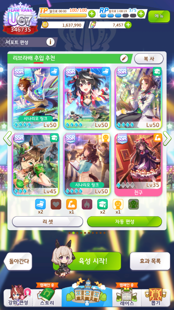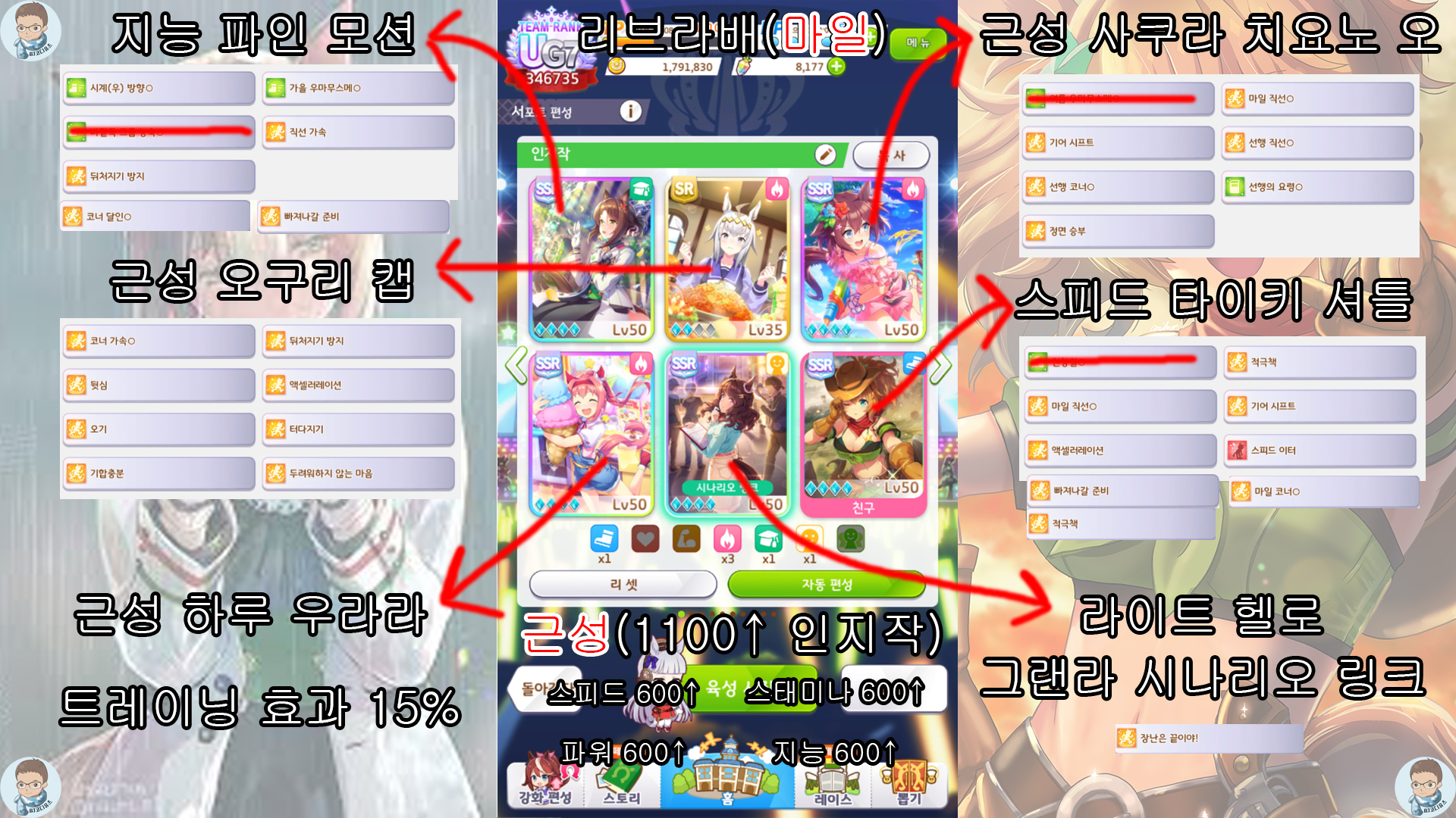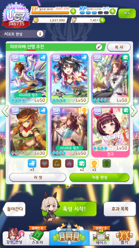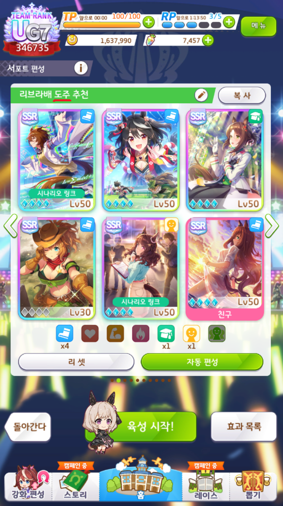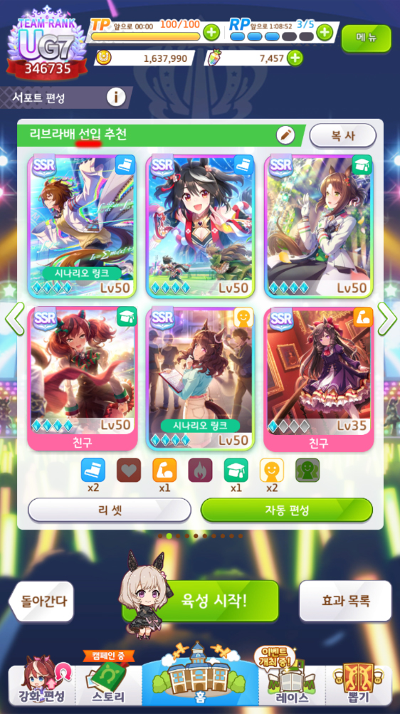 (추천 : 스태미나1100↑파워1100↑근성1100↑)
