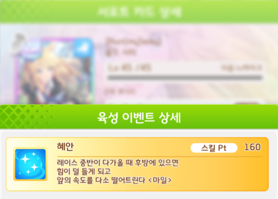 추입으로 육성할 경우 => 시선 + 추입의 요령