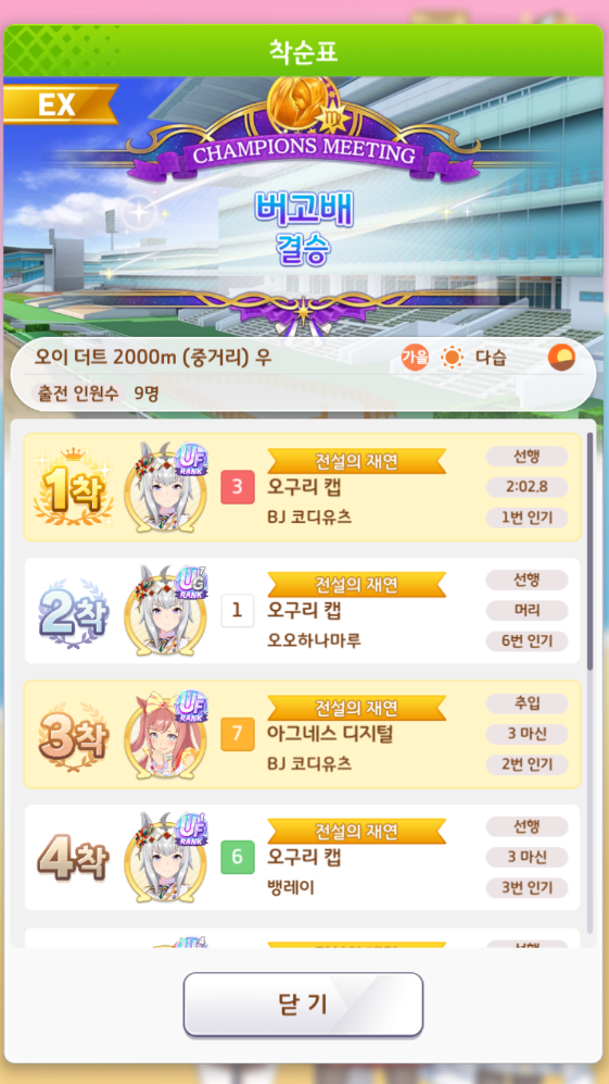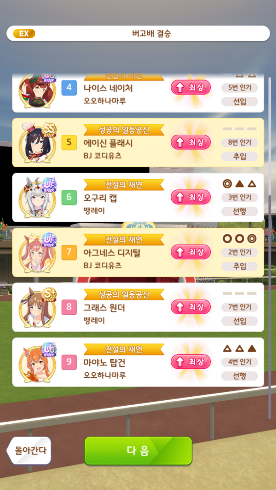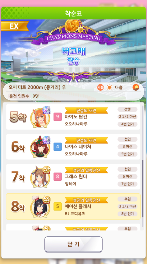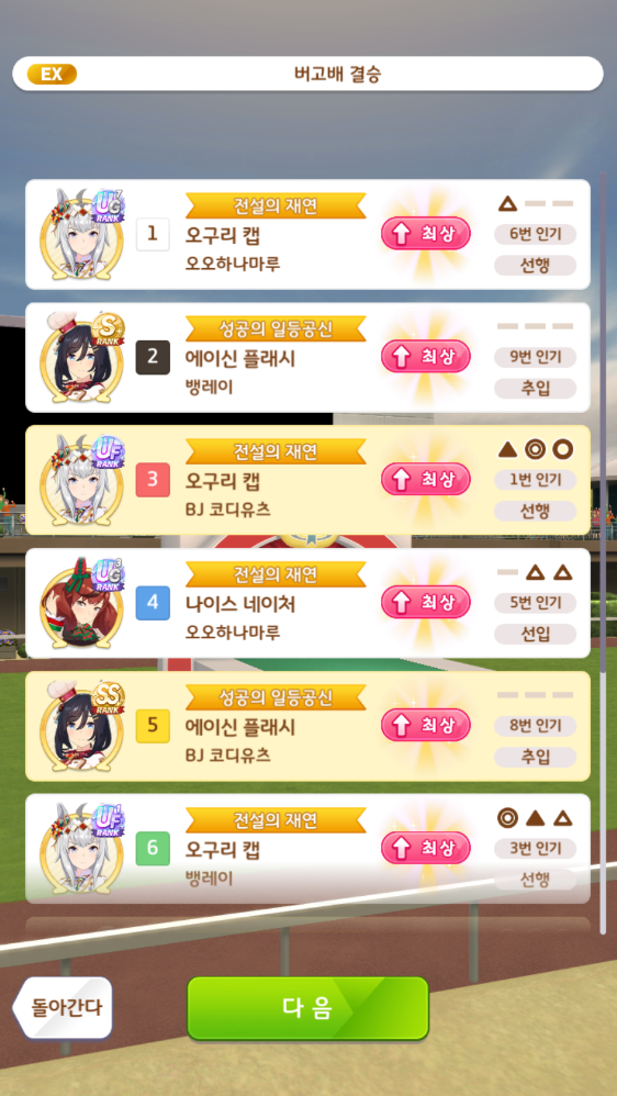| [우마무스메] 챔피언스 미팅 리브라배 2회차 공략 - (Umamusume) (0) | 2024.01.01 |