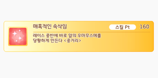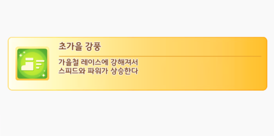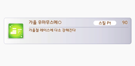 크리스마스 오구리 캡 스피드 1500↑ / 스태미나 700↑ / 파워 900↑ / 근성 600↑ / 지능 900↑