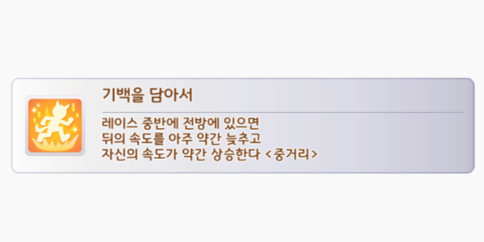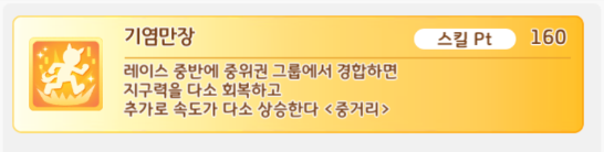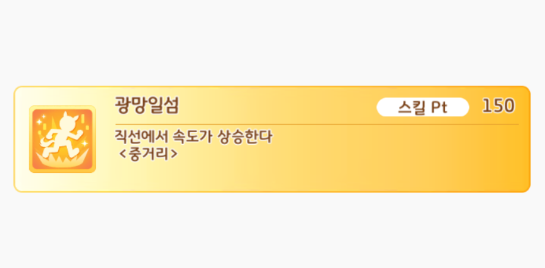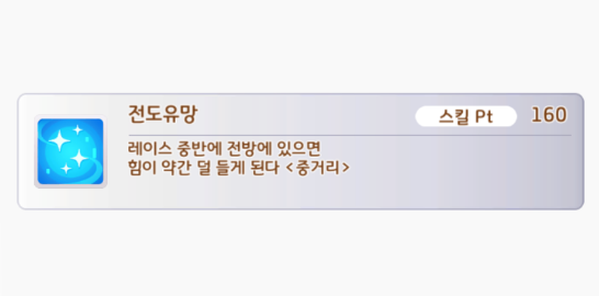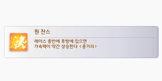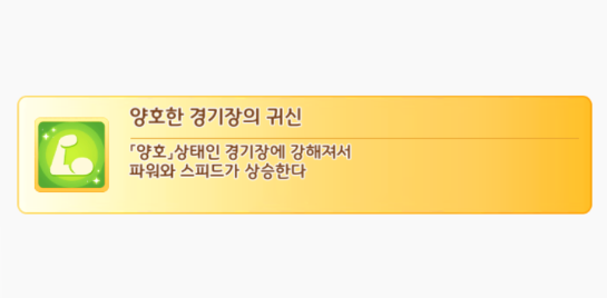 스피드 600↑ / 스태미나 1000↑ / 파워 600↑ / 근성 600↑ / 지능 1200↑