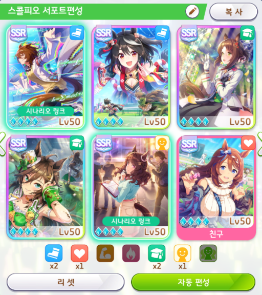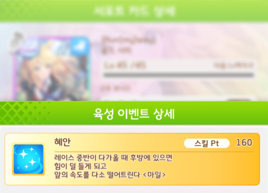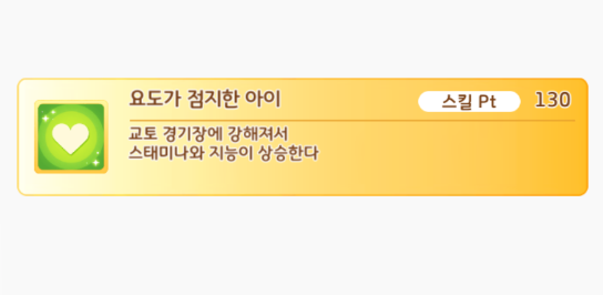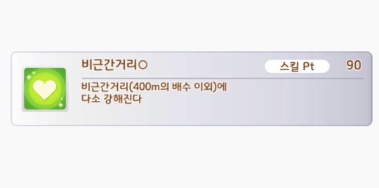 스피드 1500↑ / 스태미나 1000↑ / 파워 900↑ / 근성 600↑ / 지능 900↑
