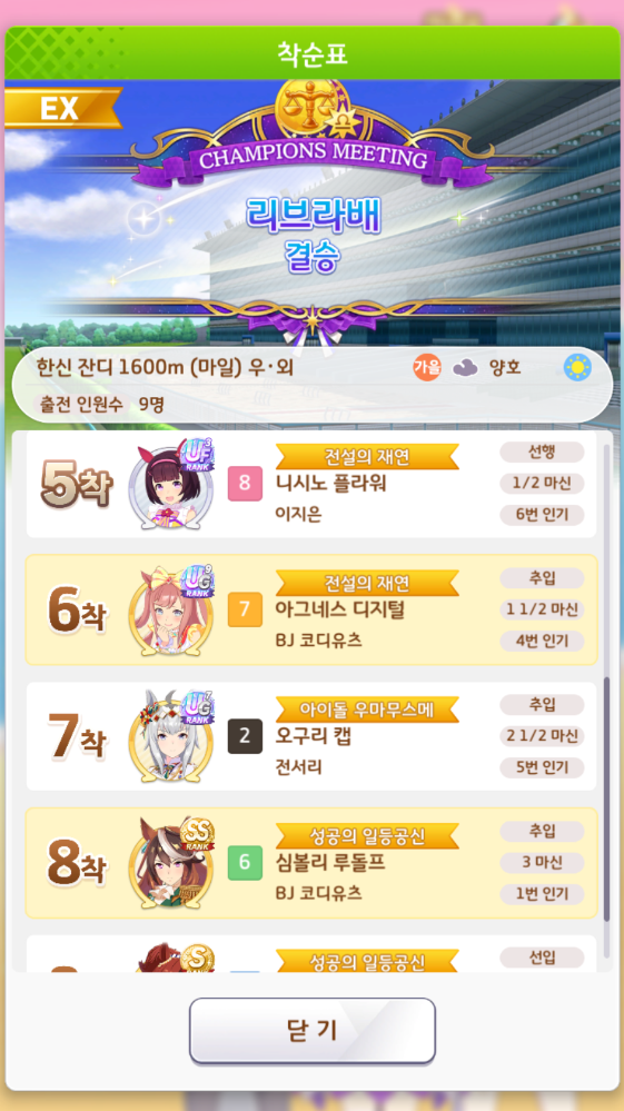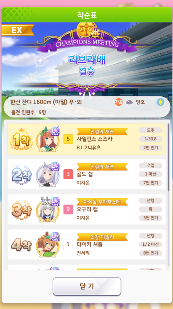 | [우마무스메] 챔피언스 미팅 스콜피오배 2회차 공략 - (Umamusume) (1) | 2024.02.07 |