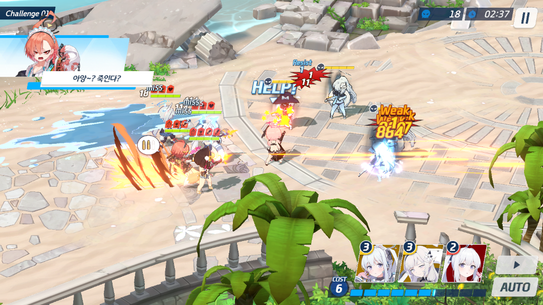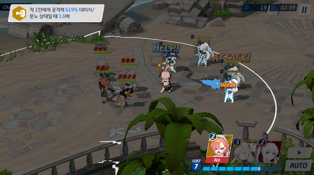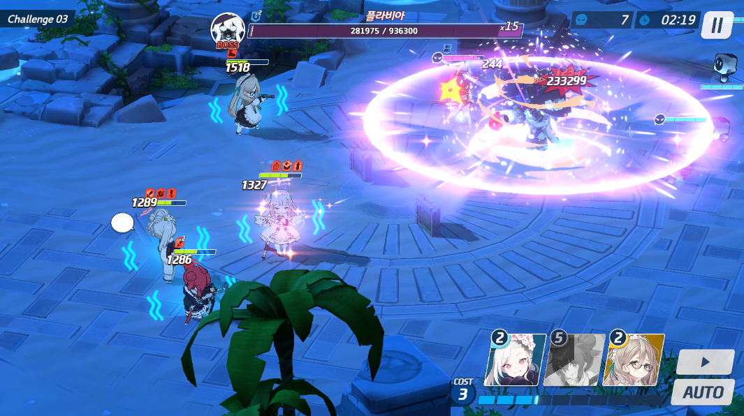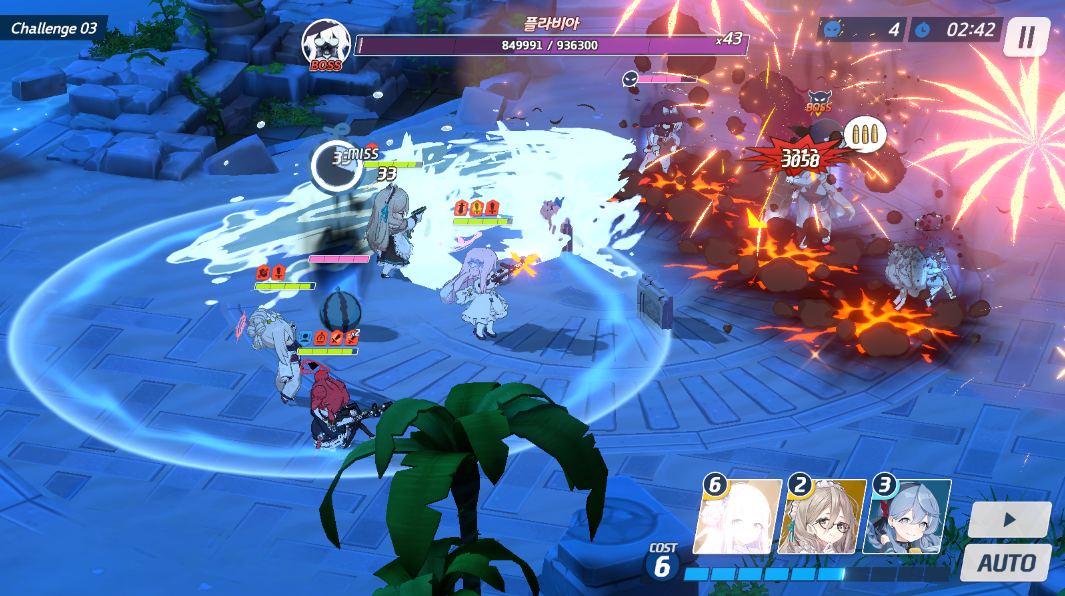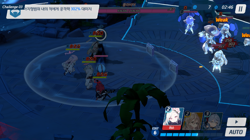 빠르게 플라비아(보스) 위주로 공격을 목표로 합니다.
