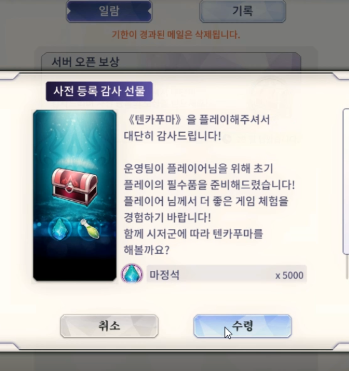 그다음에 우편에서 마정석 5000개를 주는데 이걸로 딱 10연차만 한다.