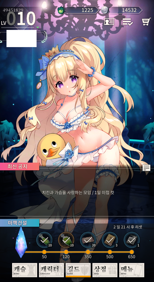 그래서 마정석 or 모아둔 체력물약 or 과금으로 채워야한다.