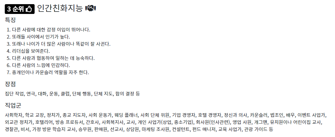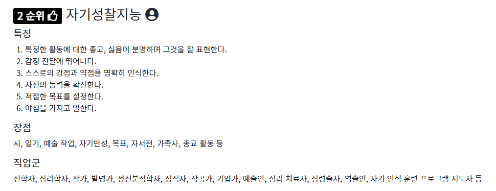 논리수학지능 / 자기성찰지능 / 인간친화지능