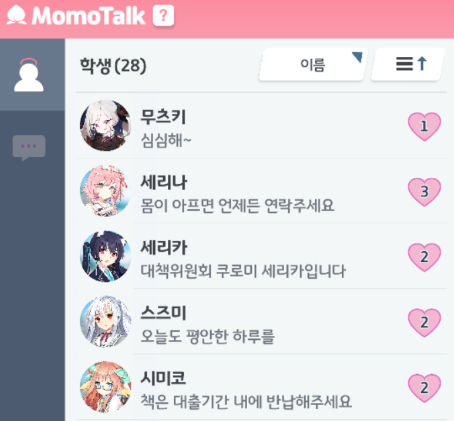 또 캐릭터 호감도작을 올릴수도 있다.(보유 캐릭터만 가능)