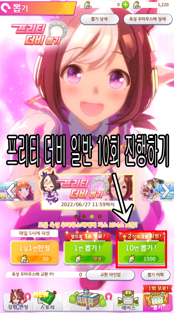 프리티 더비는 1일 1회 무료뽑기가 있기 때문에
