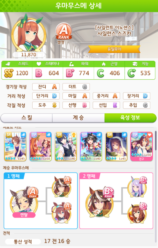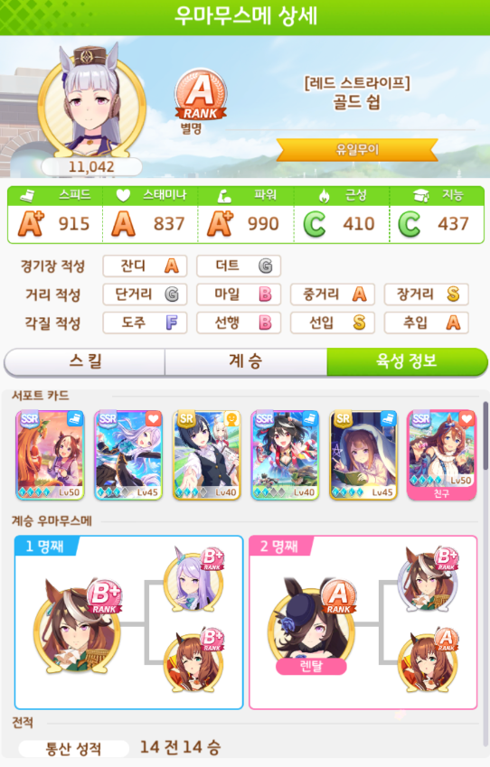 계승 : 파워6 스태미나3 + 파워5 스태미나3