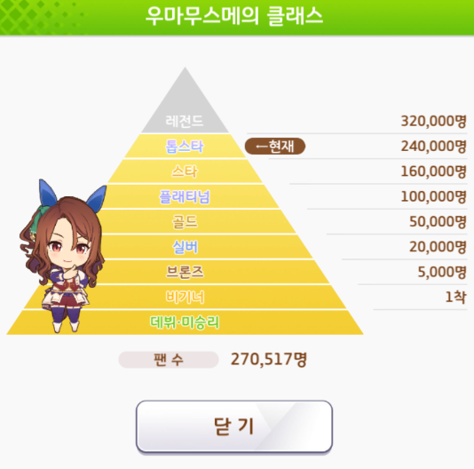팬 수를 24만~25만 맞추고 URA 예선전을 준비합시다.