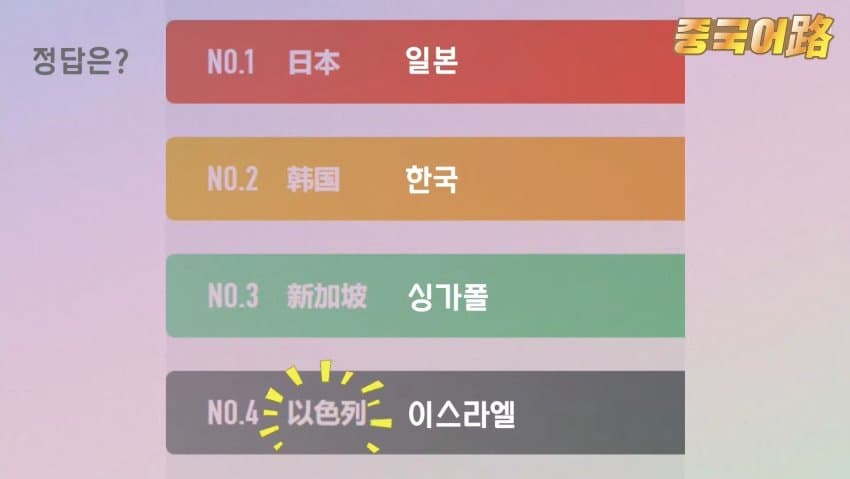 1위 일본 / 2위 한국 / 3위 싱가폴 / 4위 이스라엘