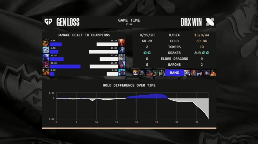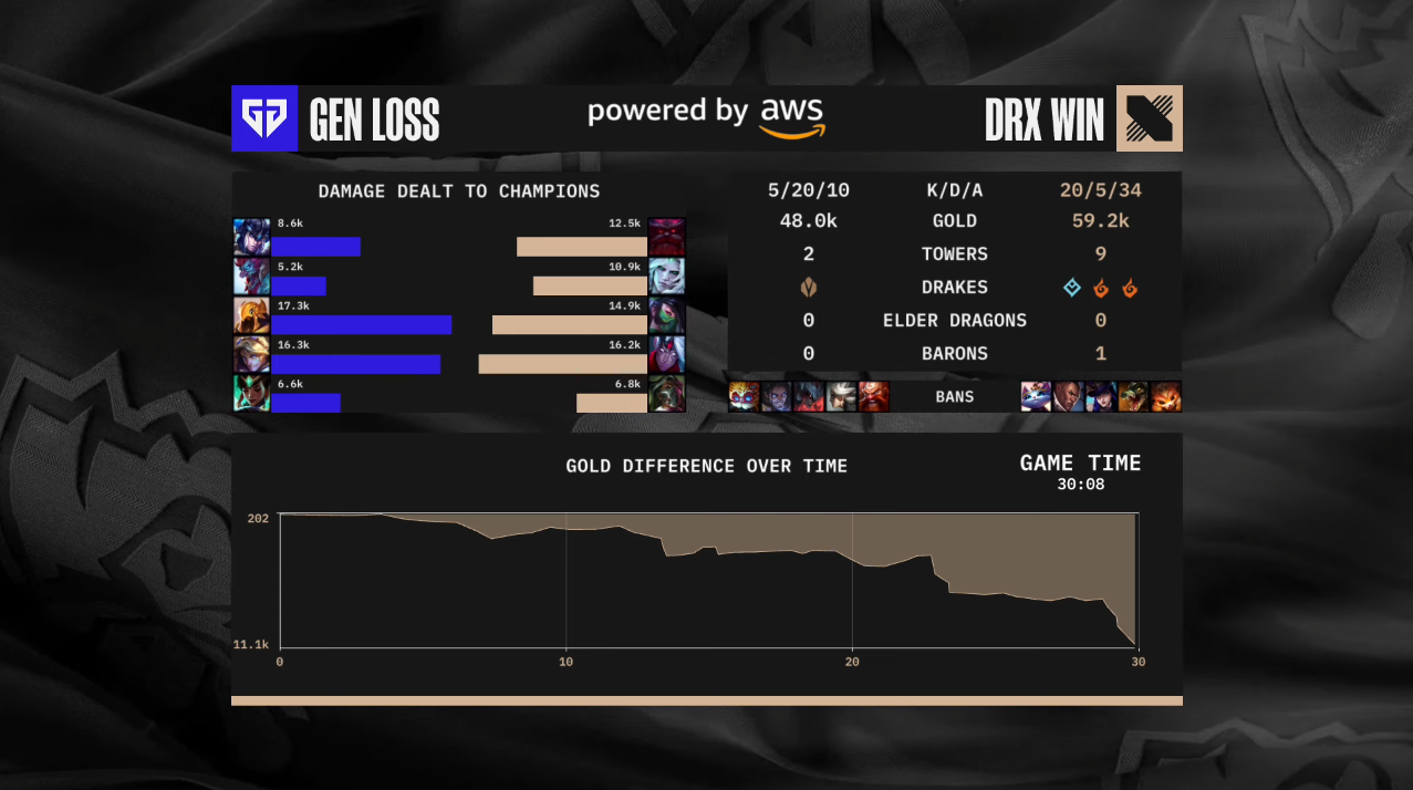 DRX : 루시안 => 신지드 => 라이즈 => 나르 => 카밀 벤