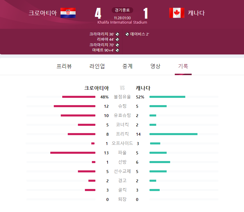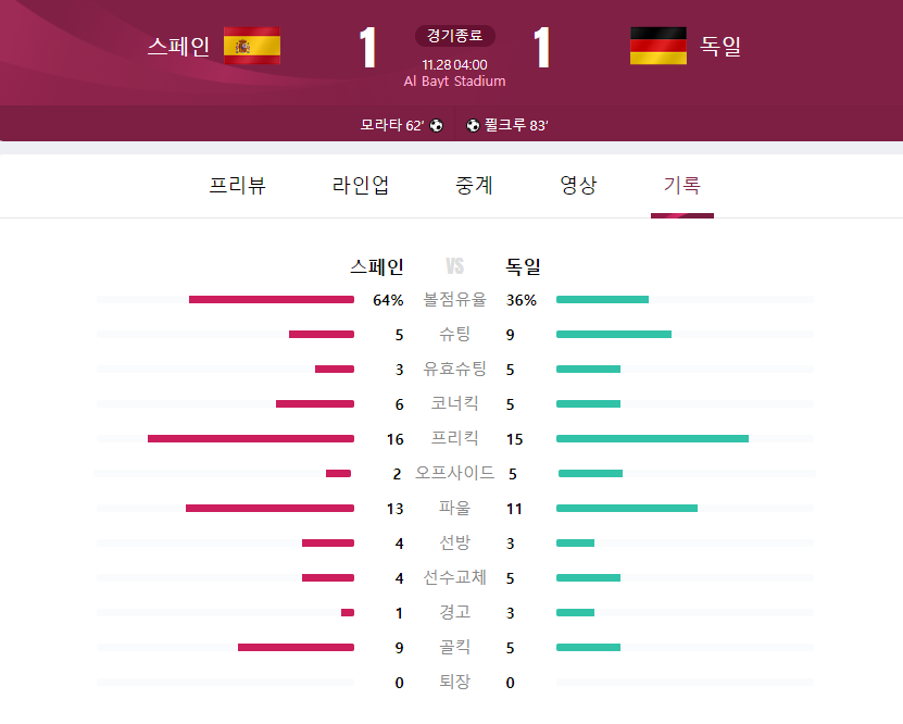 2022 카타르 월드컵 8일차 경기결과 [E F조]