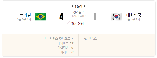브라질이 한국상대로 4골을 넣고 승리 4번