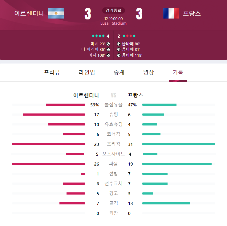 2022 카타르 월드컵 결승 경기결과 [아르헨티나 VS 프랑스]