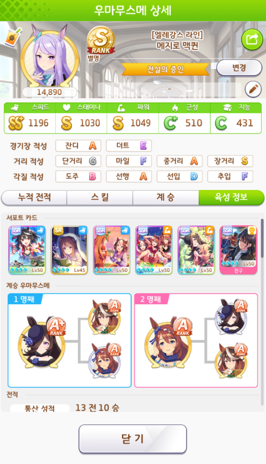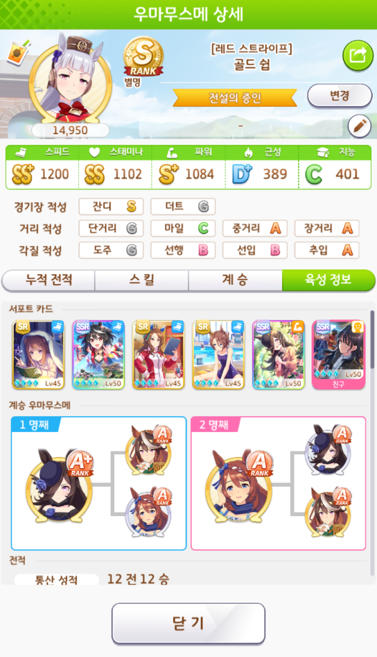 다시 육성해서 S등급 2개 만들고 성공했습니다.