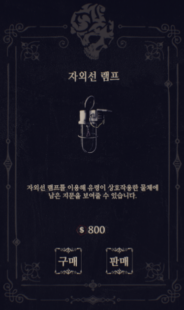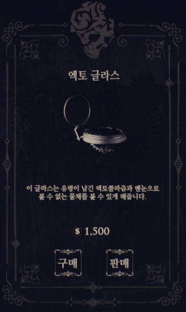 초반 유령을 찾을때는 필요없는 아이템입니다.