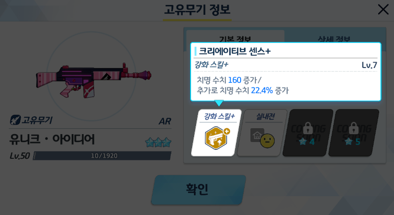 최소 효율은 5성 고유무기 1성입니다.