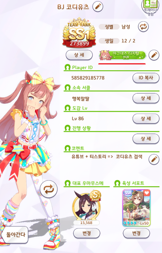 아그네스 디지털은 애정 캐릭으로 넣었습니다.