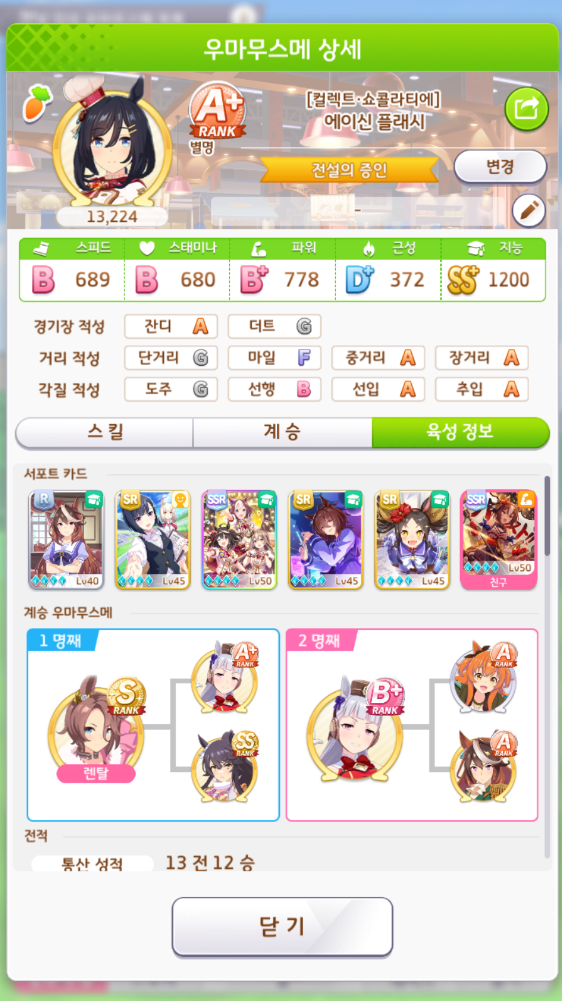 서포트 카드가 스펙이 낮아서 SS등급이 저에게는 최선입니다.